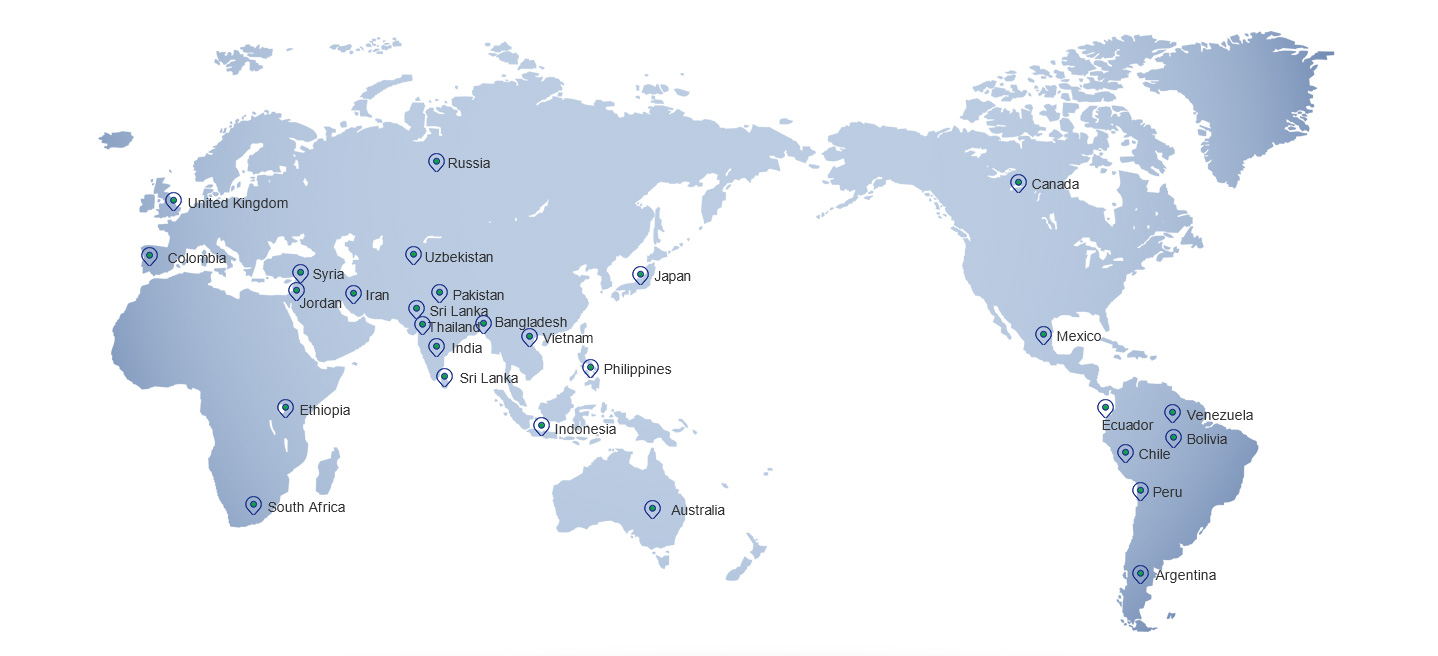 Japan, Indonesia, Philippines, Pakistan, Sri Lanka, Bangladesh, Chile, India, Uzbekistan, Ethiopia, South Africa, Mexico, Colombia, Ecuador, Mauritius, Iran, Syria, Peru, Venezuela, Bolivia, Argentina, Canada, Jordan, Vietnam, Thailand ,AlgeriaJapan, Indonesia, Philippines, Pakistan, Sri Lanka, Bangladesh, Chile, India, Uzbekistan, Ethiopia, South Africa, Mexico, Colombia, Ecuador, Mauritius, Iran, Syria, Peru, Venezuela, Bolivia...